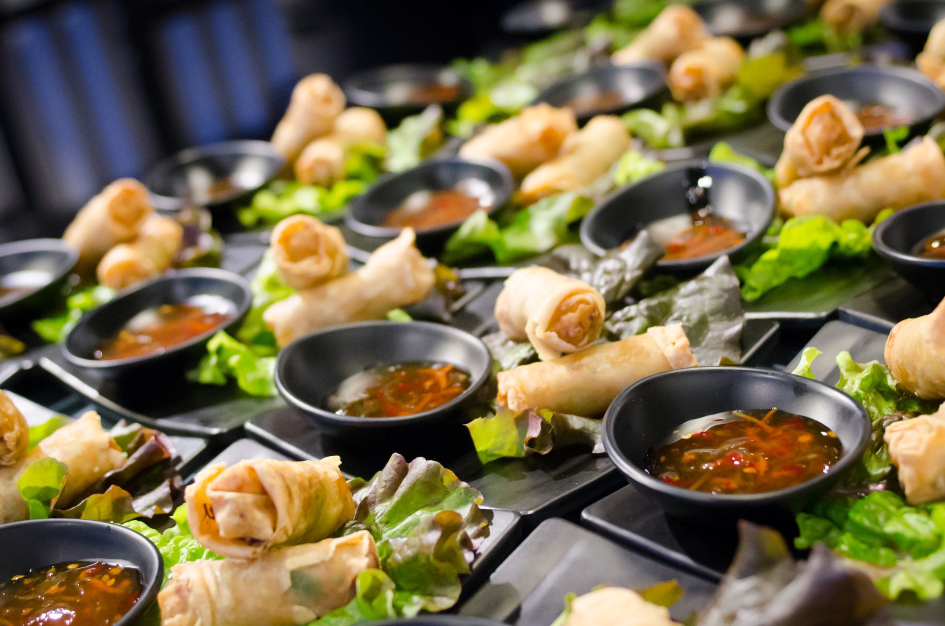 - Totto Sushi & Grill: Fresh-rolled sushi on site by our sushi chefs and visually striking sushi-cuterie displays that double as décor. Hot bites like dumplings and rice dishes available on request.